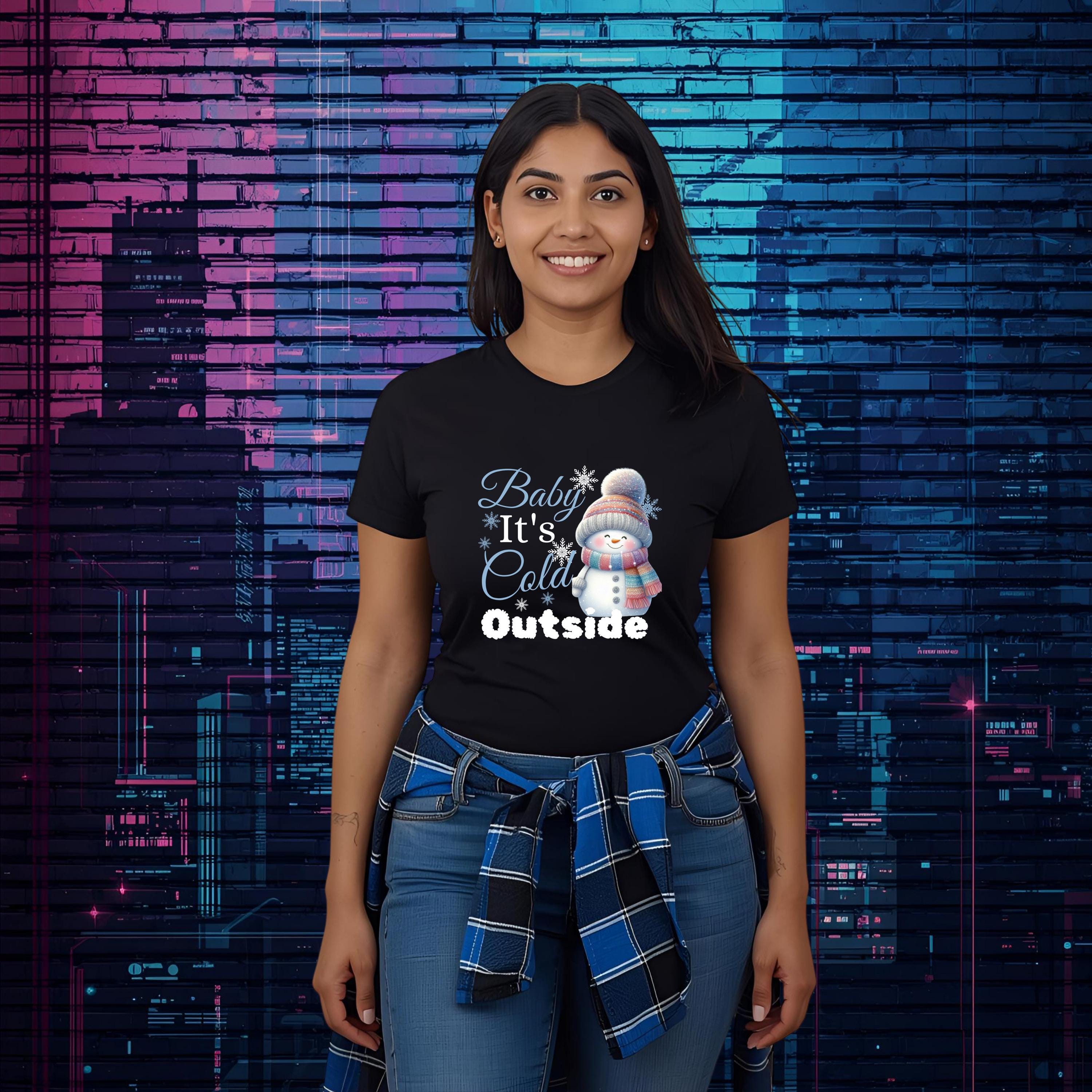 Cozy up in festive winter style with this adorable “Baby It’s Cold Outside” Snowman Tee!